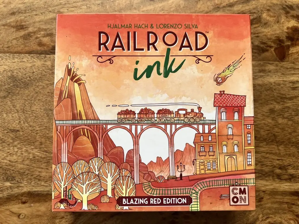 Je vous propose la version rouge ardent de Railroad Ink, un roll and write (j’aime beaucoup les roll and write !).